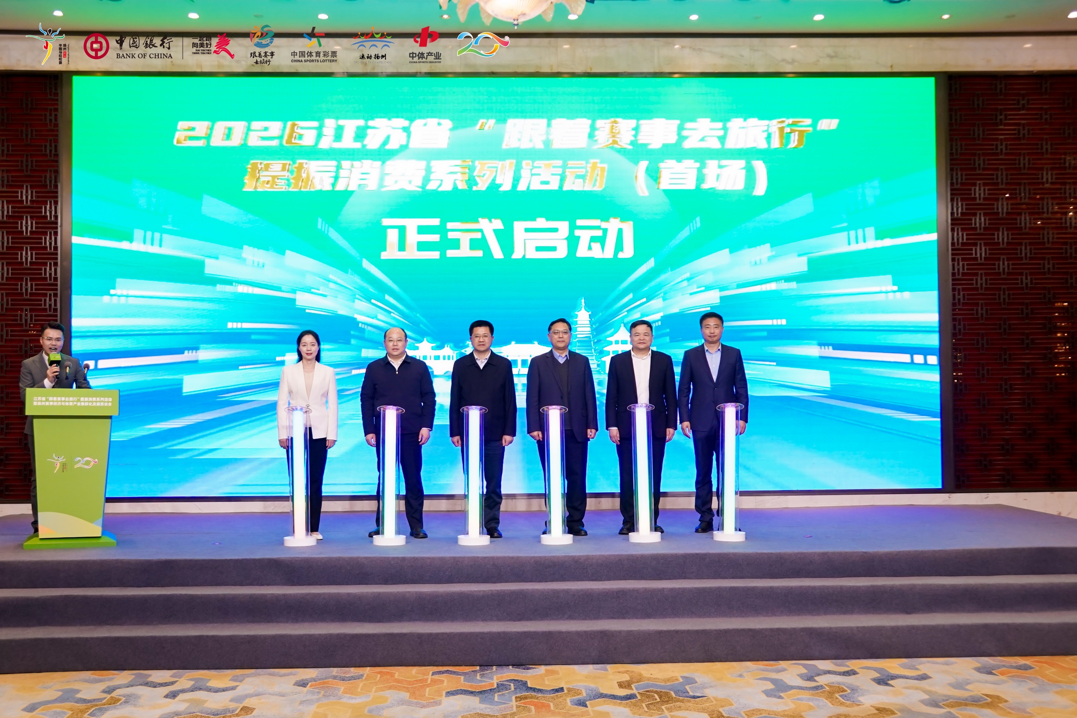 现场集中开展战略合作签约、主题活动发布、赛事赛历公布、大赛颁奖等多项环节,2026江苏省“跟着赛事去旅行”提振消费系列活动(首场)同步启动。