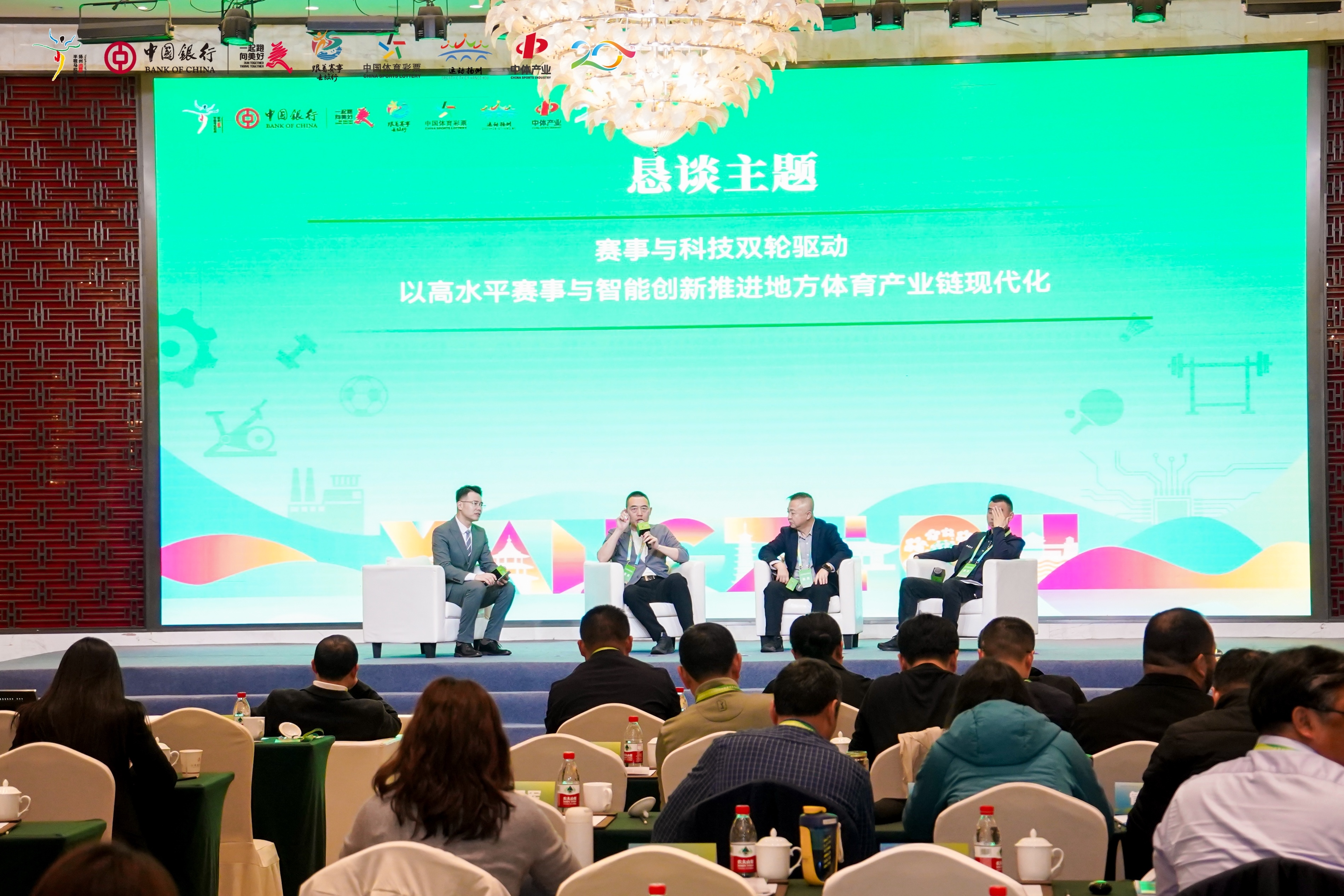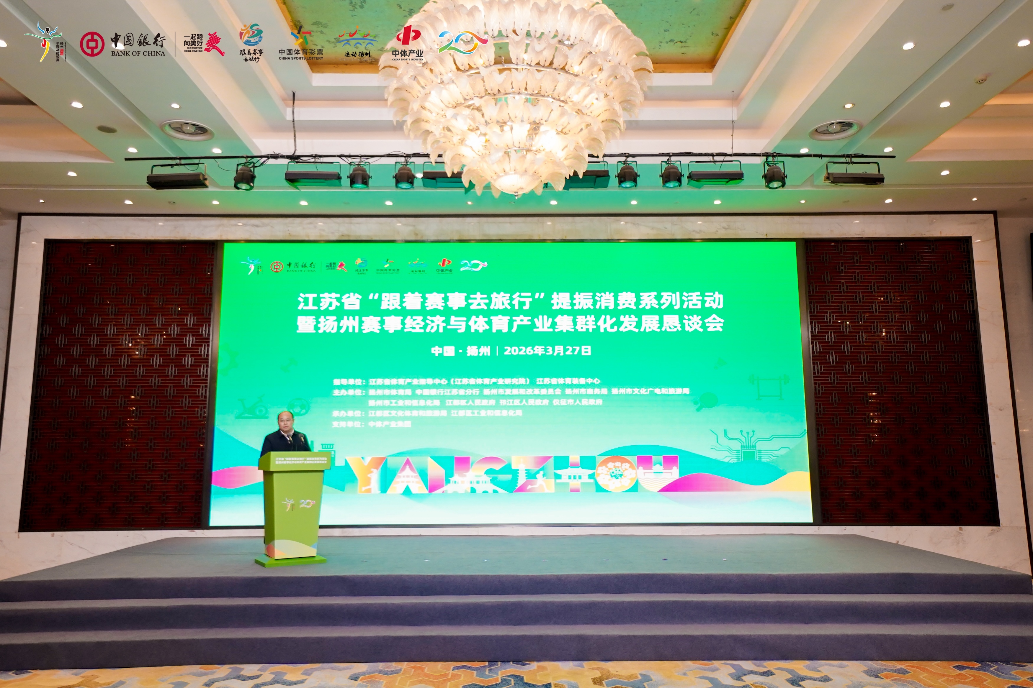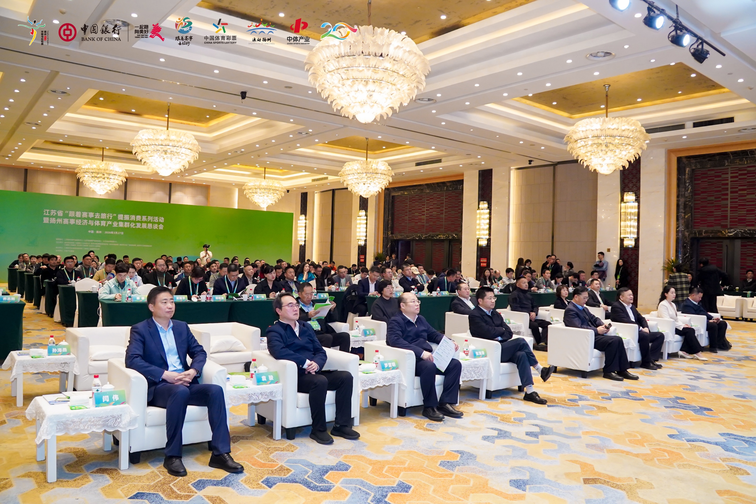 3月27日,江苏省“跟着赛事去旅行”提振消费系列活动暨扬州赛事经济与体育产业集群化发展恳谈会在扬州市江都区长青国际酒店圆满举行。