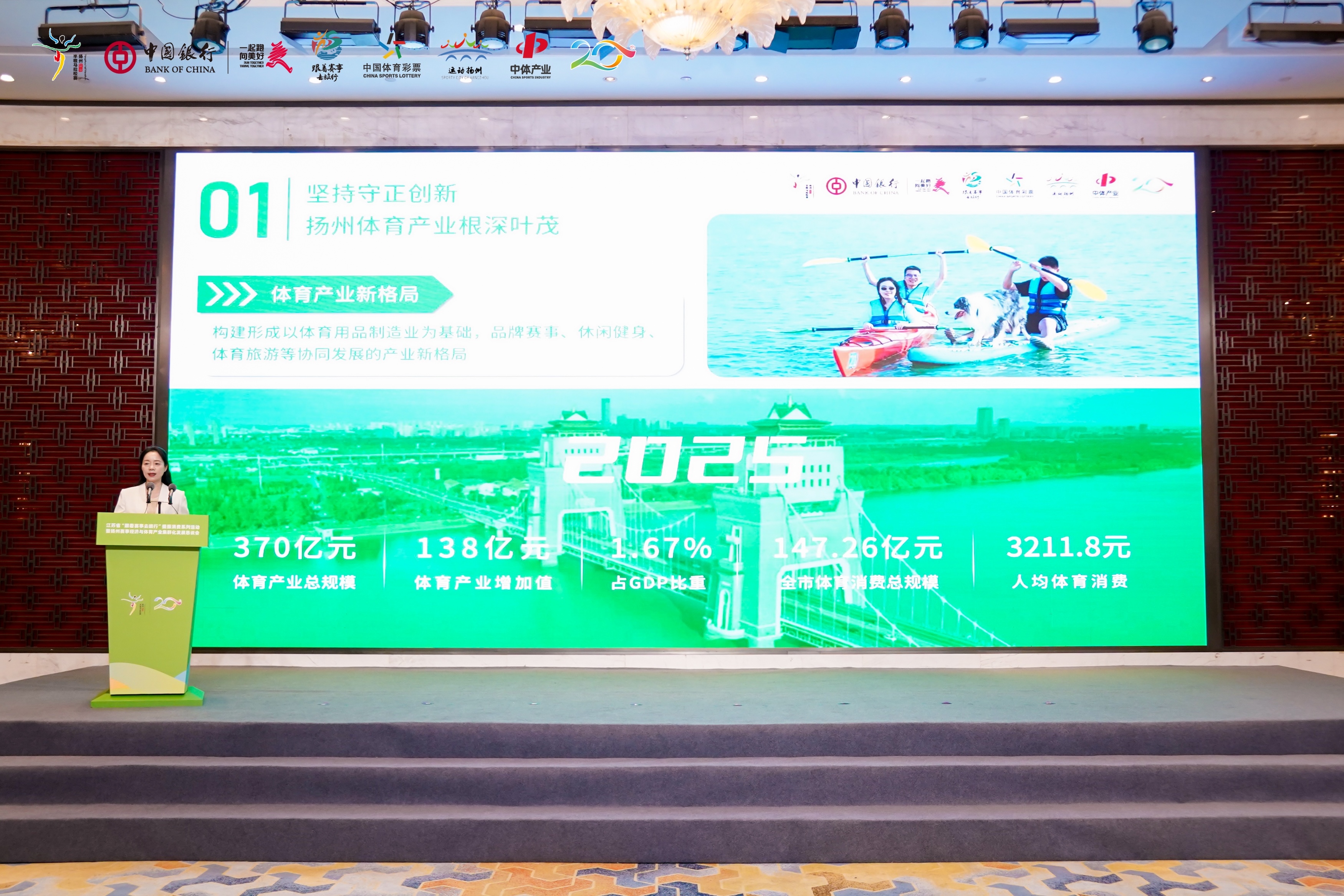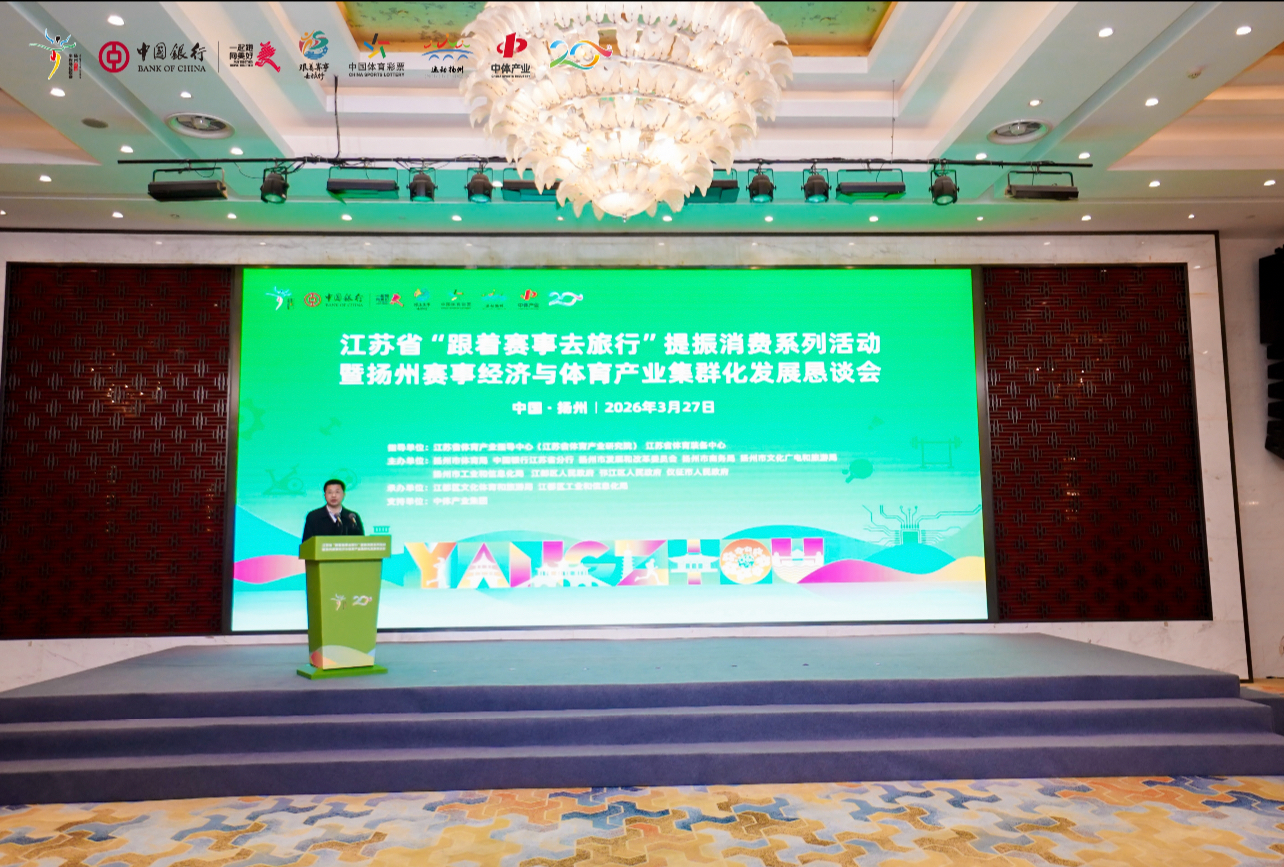 本次活动由江苏省体育产业指导中心(江苏省体育产业研究院)、江苏省体育装备中心指导,扬州市体育局、中国银行江苏省分行等多部门联合主办,中体产业集团提供支持,以“赛事赋能、产业聚势、消费提力”为核心,聚焦“跟着赛事去旅行”品牌打造与扬州赛事经济、体育产业集群化发展主线,汇聚政、产、学、研、金多方力量,搭建起交流合作、共谋发展的优质平台,为江苏体育产业高质量发展注入新动能。