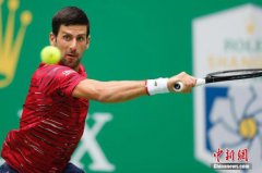 资料图:2019年10月11日,塞尔维亚选手德约科维奇在上海大师赛的比赛中回球。头号种子、塞尔维亚球星德约科维奇直...