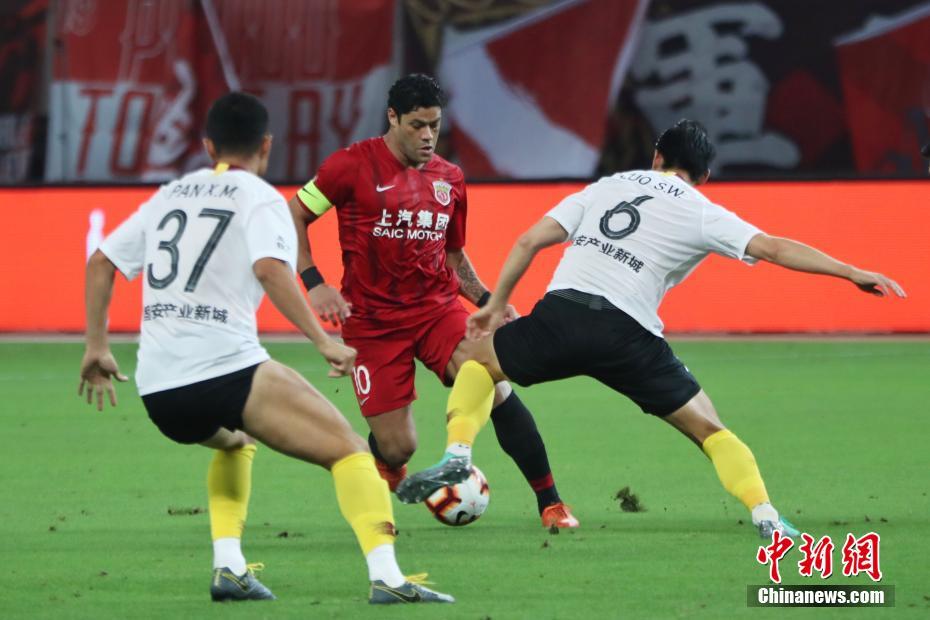 资料图:上海海港前外援队长胡尔克(红)在比赛中。申海 摄