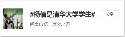 淡定摘下本届奥运会首金后,与杨倩相关的话题一度引爆微博热搜,其中话题 #杨倩是清华大学学生# 受到众多网友讨论。