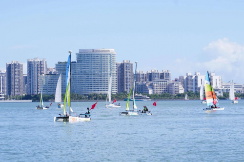 随着海口湾畅通工程、西海岸贯通更新工程的完工,海口海岸线上构建起一个个滨海城市体育空间,形成滨海人居风景线,让城市和生活空间更美好。在本次比赛的开幕式上,120余名大众爱好者,与专业选手组成海上巡游编队,从码头起航,经过海口自在湾、世纪大桥、华彩·海口湾广场、云洞图书馆等海口核心地标,展现海口优美的滨海风光和城市天际线。片片彩帆与碧海蓝天共同组成一幅独属于海口这座帆船城市的美丽画卷。