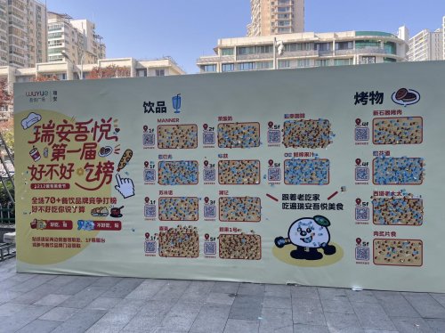 “在12月,给餐饮界来一点小小的民心反馈!”本月,瑞安吾悦广场发起首届“好不好吃榜”全民打榜活动。在2-3号门连廊处,一张集结全场70余家餐饮品牌的“美食民意墙”正式亮相,顾客可通过红、蓝贴纸进行实名投票——红色代表“好吃”,蓝色代表“报吃”,以最直观的方式汇聚舌尖上的真实评价。