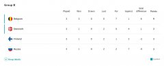最终芬兰、俄罗斯、丹麦三队都以1胜2负的战绩同积3分,但丹麦队凭借净胜球优势排名小组第二,惊险出线。C组晋级...