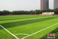 资料图:北京市海淀区中关村第三小学雄安校区足球场草坪已修整完善。资料图:2022年卡塔尔世界杯亚洲区预选赛第...