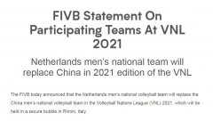 北京时间26日晚,国际排联官网发布公告,荷兰男排将顶替中国男排参加2021年男排国家联赛。国际排联曾宣布2021年排...