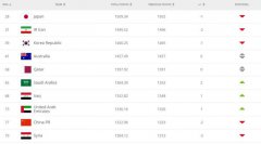 此次公布的排名中,国足积分为1322.96分,位列世界第77位,与上期相比下降两位。亚洲排名方面,国足位列第9,排在...