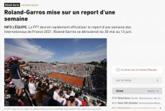 据法国媒体报道,受到新冠肺炎疫情影响,2021年法网将延迟一周举行,由原定的5月23日-6月6日推迟至5月30日-6月13日之...