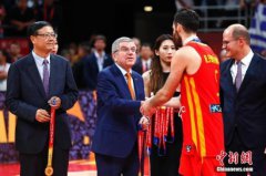 资料图:2019年9月15日,国际奥委会主席巴赫(左二)为西班牙队颁奖牌。” 除此之外,巴赫也对接种疫苗在内的防疫措...