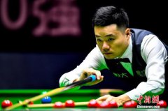 中新社记者 陈骥旻 摄 随后的三局,丁俊晖轰出129分和128分两杆破百,奥沙利文交出一杆100分,丁俊晖5:3领先,取得...