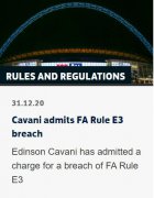 当地时间2020年12月31日,英足总官网发布公告称,曼联前锋卡瓦尼因种族歧视事件,将被禁赛三场,罚款10万英镑。英...