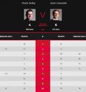在利索夫斯基与塞尔比的比赛中,前5局利索夫斯基状态火热,先后打出单杆88分、89分和110分的表现,取得4:1的领先...