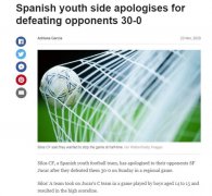 外媒报道截图。 中新网客户端北京12月8日电(邢蕊)日前,西班牙少年联赛上出现罕见一幕。瓦伦西亚大区的Los Silos CF足球俱乐部的青少年梯队以30:0的悬殊比分击败了Deportes Júcar足球俱...