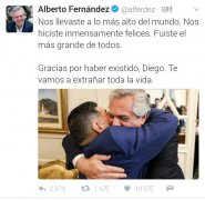 马拉多纳去世消息传出后,阿根廷首都布宜诺斯艾利斯总统府附近的五月广场上,成千上万球迷自发前来,不少人手...